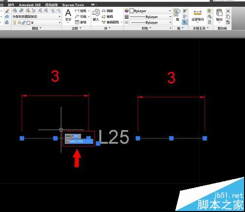 4、選中線段和文字,輸入“mkltype”命令,回車