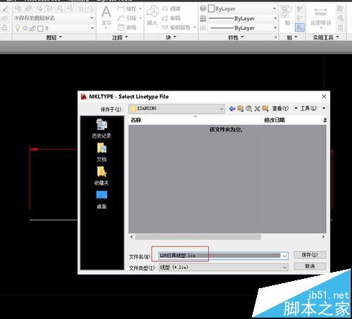 5、選擇lin文件的存儲(chǔ)位置和文件名,如圖“L25燈具線型”,回車