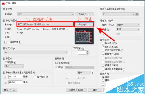 1、同時按住Ctrl+P,打開"打印"窗口。“圖紙尺寸”選“A4”,將鼠標放到圖紙示意圖上,會浮現出說明文本。