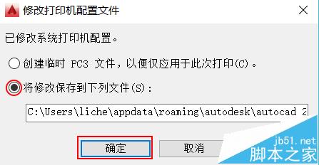 6、彈出“修改打印配置文件”,僅應用于此次打印選第一個,否則選第二個。這里我們選第二個。