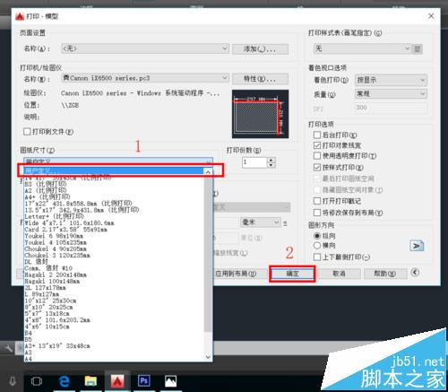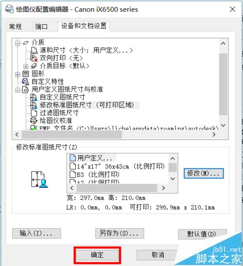7、“圖紙尺寸”選擇我們剛才設置好的“用戶定義”,單擊“確定”即可。