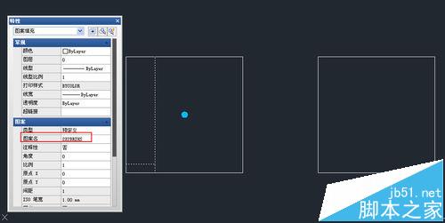 5、輸入MEASUREMENT,回車,輸入0,回車,設置為英制。輸入H,回車,選擇圖案2XBRIKS,單擊“拾取點”按鈕后在左側矩形內單擊,或者單擊“選擇對象”按鈕后單擊右側矩形,單擊“確定”按鈕,關閉填充對話框,觀察填充后的效果,如下圖所示。