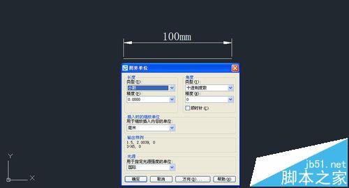 1、我們先來看在單張圖中單位設置是否有作用。我們新建一個文件,輸入UNITS后回車,打開單位設置對話框,將單位設置成毫米,畫一段100毫米長的線,如下圖所示。