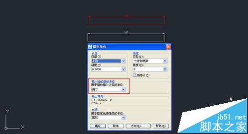 3、你會看到它跟單位是毫米時畫的線長度是完全一樣的。因此很多人就產生疑問了,CAD的單位有什么用?到底應該如何設置呢?首先要確認一點,繪制的CAD圖形都需要有精確的尺寸,因此CAD軟件單位設置肯定是有作用的,那為什么100毫米會跟100英寸一樣長呢?首先我們要注意觀察一下“圖形單位”設置對話框,如下圖所示: