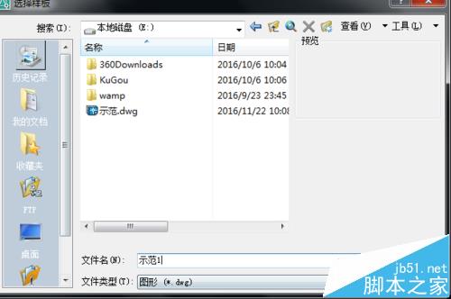 2、將你新建的文件保存在E盤(這點非常重要,就是要把文件保存在和操作文件同一個位置),自己取一個文件名(我取文件名為“示范1.dwg”),
