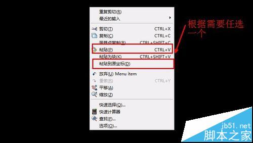 6、然后再主界面任意位置電力鼠標右鍵,選擇“粘貼”或者“粘貼到原坐標”(一般都是粘貼到原坐標),這樣就剪切了光柵圖片。