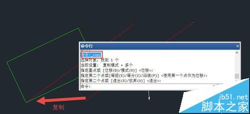 2、假設像上圖一樣,矩形和直線不在一起,但我們希望以矩形某個角點為基點進行旋轉,我們可以將傾斜的直線復制一條到矩形的角點處,如下圖所示。