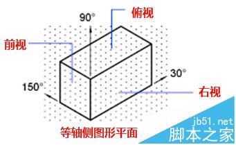 2、在這種狀態(tài)下,不僅可以繪制方體的軸側(cè)效果,還可以利用橢圓的等軸測(cè)圓(I)選項(xiàng)來(lái)繪制軸測(cè)圖中的圓。在使用等軸側(cè)柵格時(shí),按F5可以切換坐標(biāo)方向,從而方便繪制左視圖、右視圖、俯視圖,按F5的時(shí)候我們可以看到坐標(biāo)軸的變化,如下圖所示。