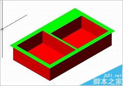 1、首先新建文件,在俯視圖中繪制長方形,用矩形命令,長為760寬為450。然后用拉伸命令對長方形進行拉伸,高度150。接著用抽殼命令進行第一次抽殼。刪除上面,抽殼距離為20。然后用移動面命令將右內側小面沿x軸向左移動400,再次執行抽殼命令,刪除上面,抽殼距離為20。然后用移動面命令間抽殼后的后內側沿y軸向前移動80。結果如圖: