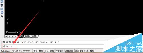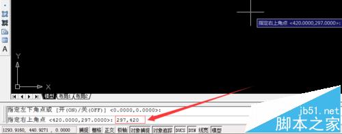 4、輸入A3紙的尺寸(297,420)數(shù)字后,我們再按回車鍵。接著在命令欄里的命令處輸入英文字母z后再按回車鍵。如圖: