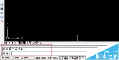 6、這時命令欄里會出現(xiàn)正在重生成模型7個字,說明A3紙大小的圖形界限設(shè)置完成。如下圖所示:
