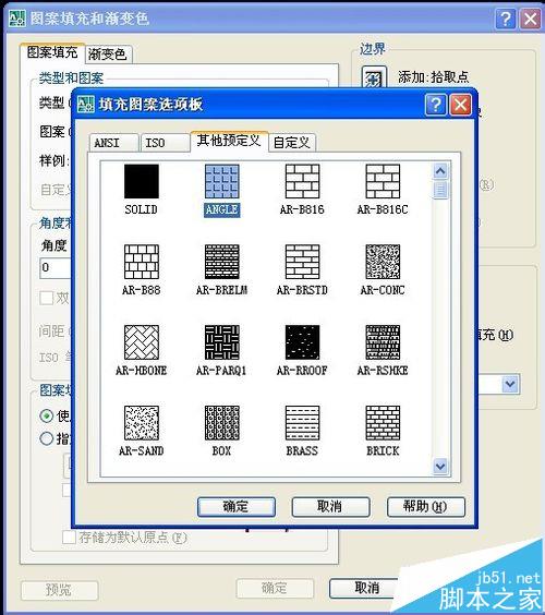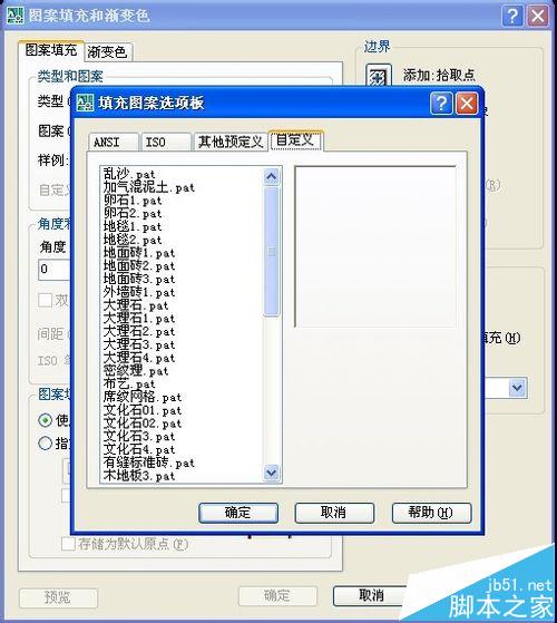 8、點擊圖案后面的帶三個點的按鈕,點擊“自定義”選項。可以看到加載好的填充圖案,這就算是大功告成了。