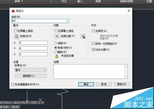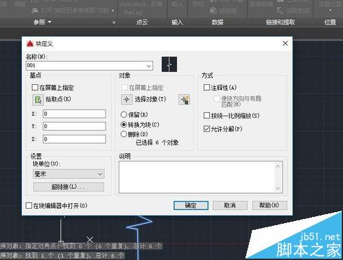 6、然后我們選擇創建塊,然后我們填寫定義塊的屬性。定義完成后。用框選選取我們剛剛制作的“折斷線”