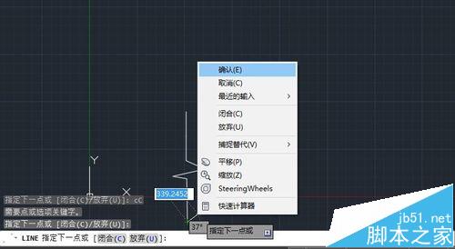3、然后我們接著直線畫出一條偏角的"Z"字母。再連續拉出一條直線。然后右鍵點擊。選擇確認就可以了。