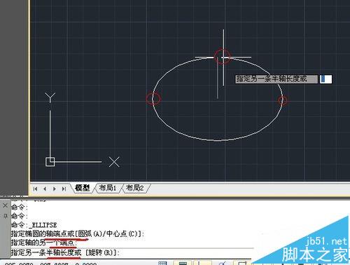 2、點(diǎn)擊橢圓命令后,在繪圖區(qū)點(diǎn)擊一點(diǎn)確定長軸端點(diǎn),然后點(diǎn)擊長軸另外一點(diǎn),移動(dòng)鼠標(biāo)點(diǎn)擊短軸的端點(diǎn)得到橢圓。