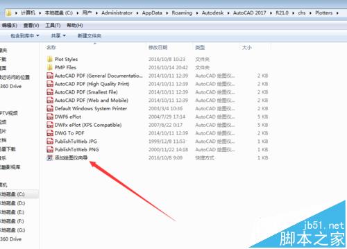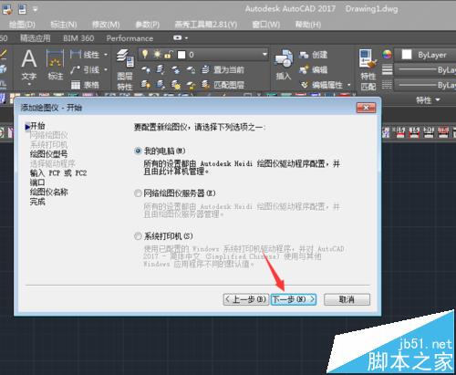 2、進(jìn)入到添加CAD打印機(jī)界面后,把圖示操作,選擇“添加繪圖儀向?qū)?/strong>”;