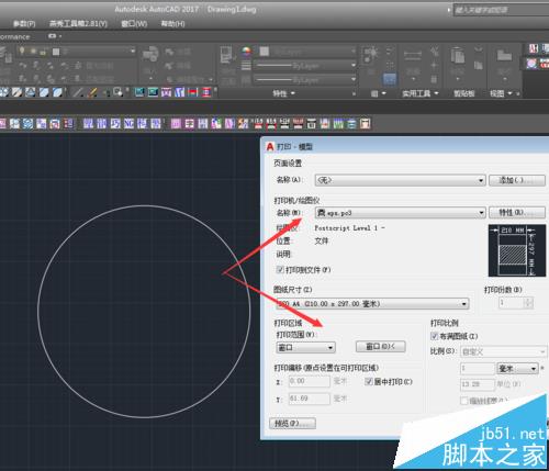 10、CAD工程師可以打開(kāi)一張圖紙,或自己隨手繪制一張,然后選擇剛添加的EPS打印機(jī),用窗口選擇圖紙,然后點(diǎn)完成;