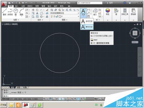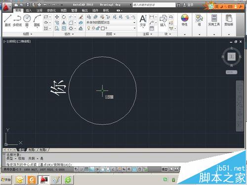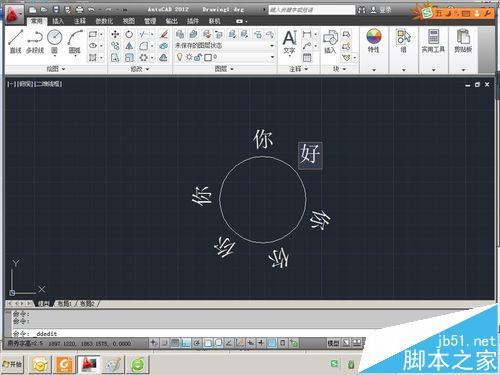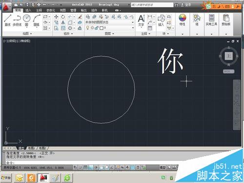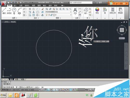 3、再隨意寫一個字在上面,利用單行文字的功能,寫下一個你字。