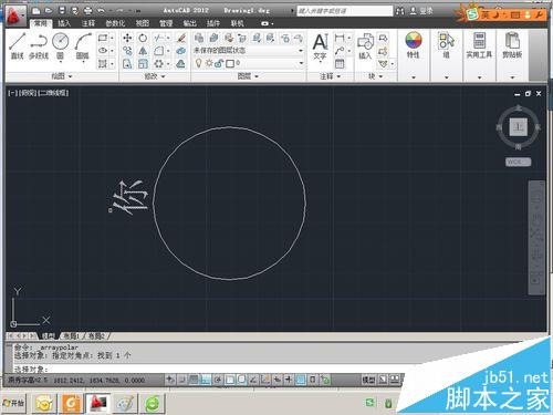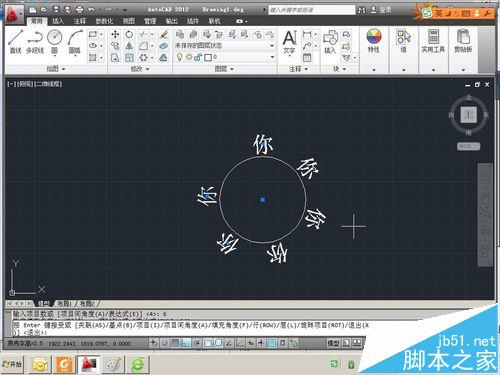5、再利用環形陣列方式,把這個字圍繞這個圓進行陣列,根據你要寫的字數來定需要陣列的數量。這里我們輸入數量6個,確認。