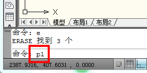 2、我們還可以在命令行中輸入cad多段線快捷鍵pl,然后按回車鍵確認。