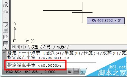 5、這時要求指定端點半寬,默認和端點半寬一樣,直接按回車就行。