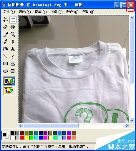 4、圖片會添加到畫圖軟件中,這時只要點擊叉叉,就是關閉畫圖軟件就可以了,圖片自動進入到CAD里了,這樣的圖片是跟隨CAD文件的。你發(fā)給別人,別人收到CAD圖紙,里面就有圖片了!