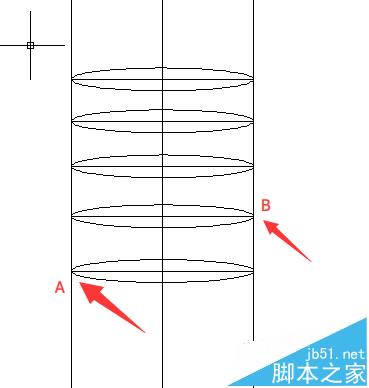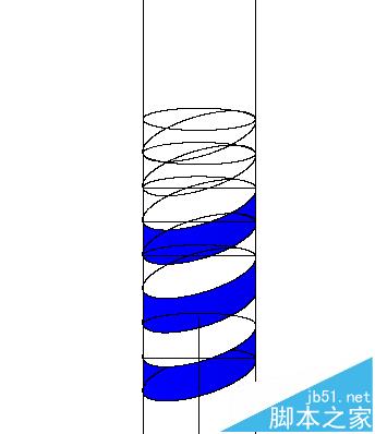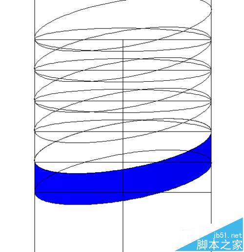3、以A、B兩點為端點在畫一個橢圓,適當(dāng)調(diào)整該橢圓,然后依次沿著中軸線往上復(fù)制該橢圓,如下圖所示: