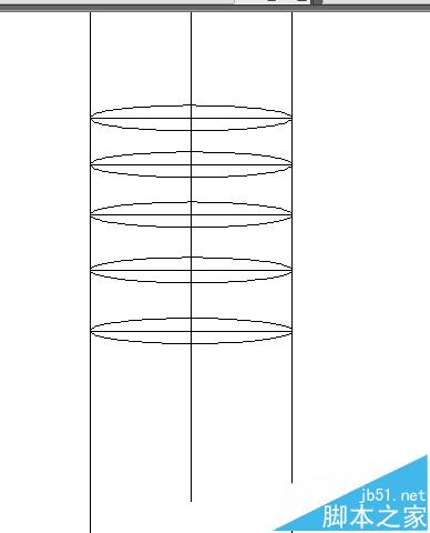 2、在該橫構(gòu)造線中畫一個橢圓,然后沿著中軸線往上以相同距離復(fù)制該橢圓……如下圖所示: