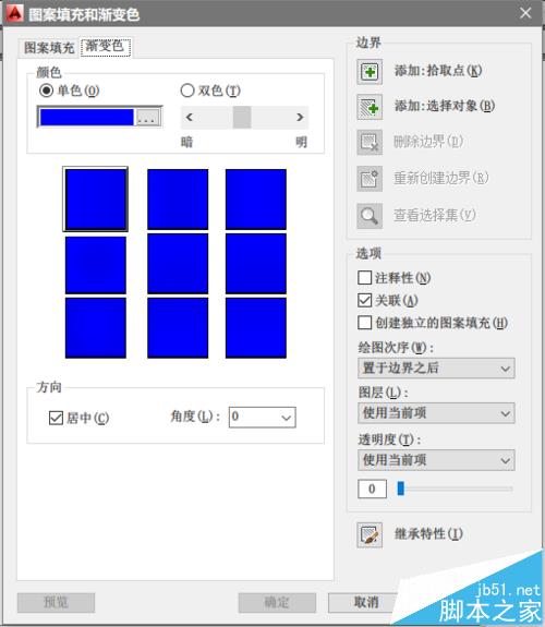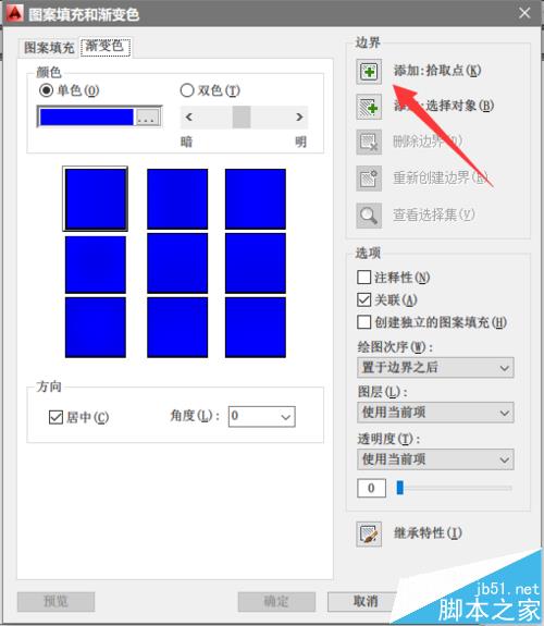 4、輸入命令hatch進行顏色填充,出現(xiàn)對話框如下,點擊右上角的“添加:拾取點”,如下圖所示:
