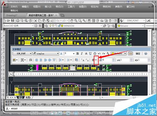 4、進(jìn)入到多行文字編輯框中,在中間找到@后面的倒三角形,點(diǎn)擊它。