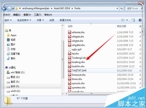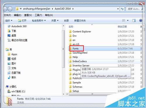 4、進(jìn)入到安裝CAD的位置中,點(diǎn)擊“fronts”文件夾打開(kāi)它。