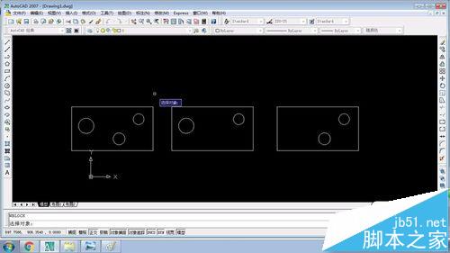 1、打開一個CAD圖檔,文檔里面有3個不同的零件圖,我現(xiàn)在需要把其中的一個圖單獨保存為一個文檔。