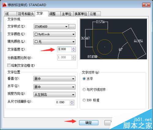 3、如果要修改文字大小,點擊文字選項卡,在文字高度文本框輸入文字高度值
