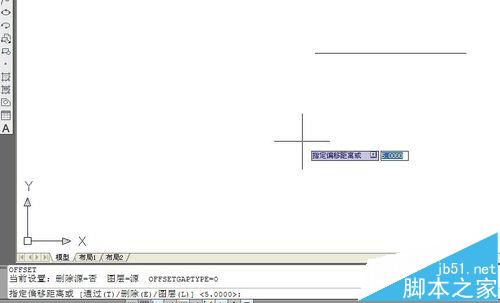 5、重新畫(huà)一條直線(xiàn),設(shè)定偏移量5mm,點(diǎn)擊偏移,在標(biāo)注尺寸查看實(shí)際偏移量是否為5mm。