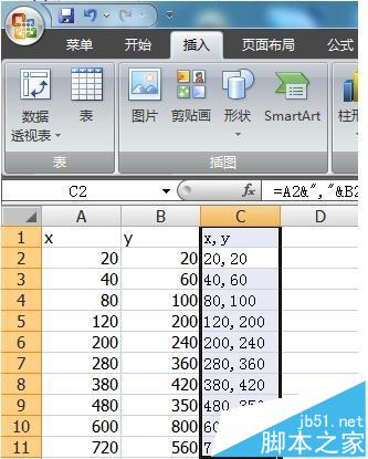 1、如圖所示為例,在EXCEL中建立坐標(biāo)數(shù)據(jù)