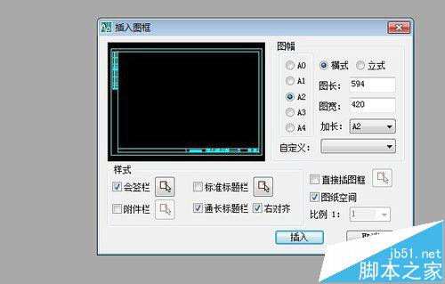 2、設置選擇你所需的圖框大小、比例,點擊插入