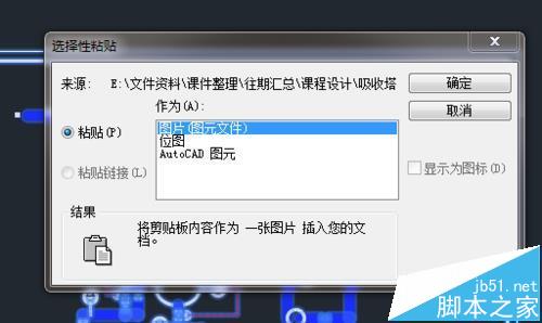 4、在選中所要復制圖形的前提下,點擊“選擇性粘貼”這一欄,就會彈出如圖所示的對話框,如果只是想將其復制粘貼到文本當中,我們只要選擇“圖片”一欄,點擊“確定”即可。