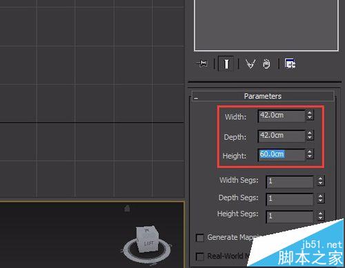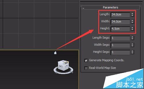 6、再次找到create選項下的geography里的box命令,在前視圖里創建一個box作為顯示器,并在modify里修改參數如圖所示: