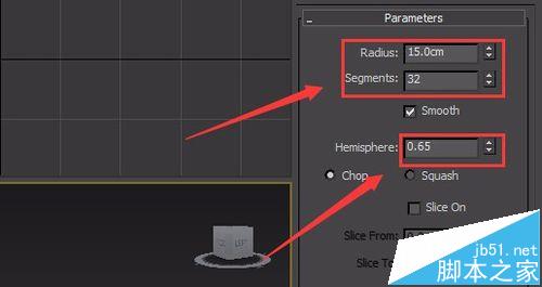 13、選擇創建的sphere物體,在modify里修改其參數如圖所示: