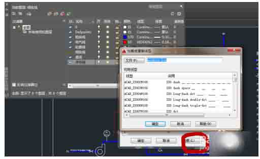 7、當(dāng)然,一般剛運(yùn)行AutoCAD軟件的時候,線型里邊只有默認(rèn)實(shí)線這一欄,這時候就需要我們自己去加在其他線型。如圖所示,點(diǎn)擊“加載”這一欄,我們可以看到會彈出許多新的線型,這時候你只要選中你所需要的線型,點(diǎn)擊“確定”就可以加載到線型欄里了。