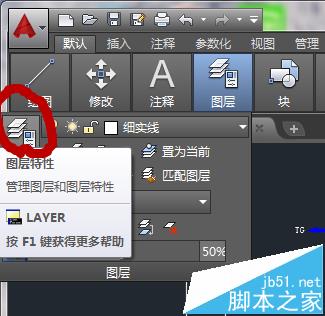 2、點(diǎn)擊鼠標(biāo)左鍵,可以看到跳出一個對話框,如圖。上面有許多按鈕,這次我們所要用到的是“圖層特性”這一欄,鼠標(biāo)左鍵點(diǎn)擊“圖層特性”。