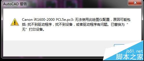3、然后點擊左上角的打印按鈕,或者是利用快捷鍵CTRL+P出現打印的設置。通常CAD系統會提示原來的打印機型號是XXX,現在不太一致,要你核對。別理會,叉掉。