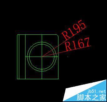 4、調用圓命令,繪制出尺寸半徑為167和195 圓,作為洗衣機的圓筒造型??梢韵冉ㄒ粭l輔助線,完成后刪掉。