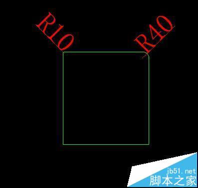 2、調用圓角命令對矩形進行圓角,左上角半徑為10,右上角半徑為40.