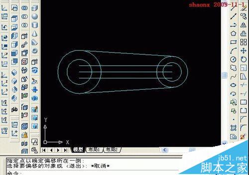 2、將中間的偏移線做成如下圖的矩形,同時刪除圓心連線及偏移線多余部分。