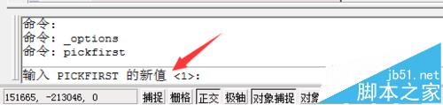 1)在命令行中輸入 "pickfirst" ,將其設為1