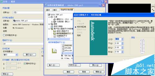 1、首先為Adobe PDF添加自定義大小的紙張。CAD打印頁面 ,打印機選Adobe PDF,特性,自定義特性,