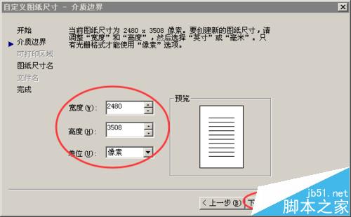 3、出現“創建新圖紙”,點擊下一步,輸入自己要定義的圖紙尺寸,以“像素”作為單位設置,之后再點擊下一步操作,彈出的窗口是文件名,按照自己的習慣可以另外設置名稱,點擊完成就可以了,但是自己要記得所創建的名稱。