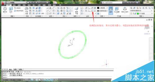 2、進行坐標系的改變,選擇Z坐標指定,選取0點,選擇原來的Y方向為現在的Z坐標完成坐標轉換。再繪制一條直線互環中心作為一條輔助參考線。如圖