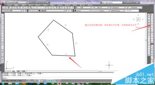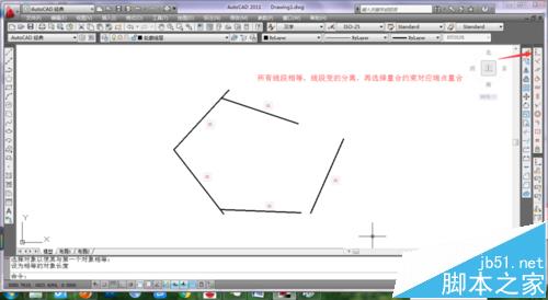 2、相等約束完成后,五條線段會有一定程度的斷開,因為繪制的線段沒有自動約束點重合的功能。在選擇幾何約束工具條中的重合命令或者點擊參數/幾何約束/重合,分別選取相鄰兩條線的端點,把五邊形連線起來。如圖所示